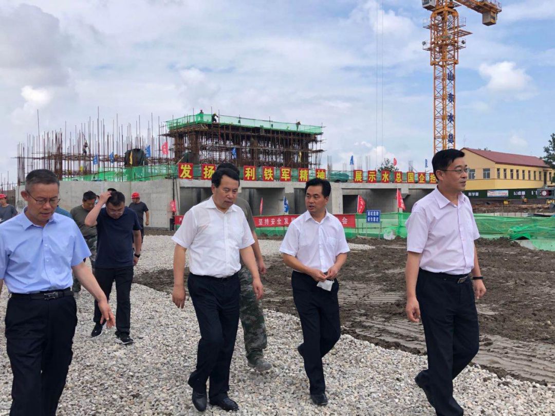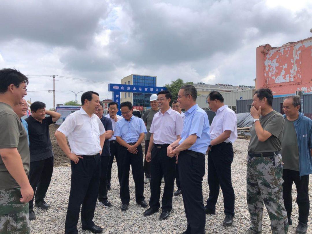 2020年7月13日,山東省水利廳廳長劉中會在壽光市委書記趙緒春的陪同下,到第二分公司負責實施的小清河防洪綜合治理工程羊橋泵站視察工程建設及防洪度汛情況,公司董事長刁望利陪同參加。劉廳長對羊橋泵站水下主體工程完工表示祝賀,對奮戰(zhàn)在施工一線的工作人員表示慰問。羊橋泵站是小清河全線開工時間最晚、施工難度最大的建筑物,山東水總能夠克服諸多困難圓滿完成工程建設任務,體現(xiàn)了國企擔當。劉廳長贊揚了公司施工組織合理、工序銜接緊密高效,通過不懈努力向業(yè)主單位、向省水利廳交上了完美答卷。他要求在做好剩余工程施工的同時要做好防洪度汛工作,確保在建工程在汛期不出問題,備齊備足防汛物資、機械、人員,做好防大汛、抗大洪的準備。