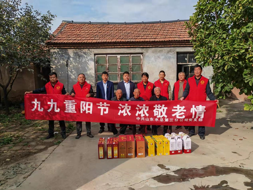 為弘揚(yáng)中華民族尊老敬老的光榮傳統(tǒng),10月14日重陽節(jié)這天,第三分公司副總經(jīng)理?xiàng)罹w輝、王慶捷一行前往山東水總有限公司鄒平市孝婦河提升改造工程施工4標(biāo)項(xiàng)目部所在地,在高書記帶領(lǐng)下看望東呂村的老黨員們,為他們帶去公司黨委的關(guān)懷和溫暖,送去慰問品并致以節(jié)日的問候和祝福。楊緒輝同老黨員們親切拉家常,詳細(xì)詢問了老黨員們的生活情況和身體狀況,囑咐他們一定要保重身體,對他們?yōu)閲?、為社?huì)做出的貢獻(xiàn)表達(dá)了崇高敬意。