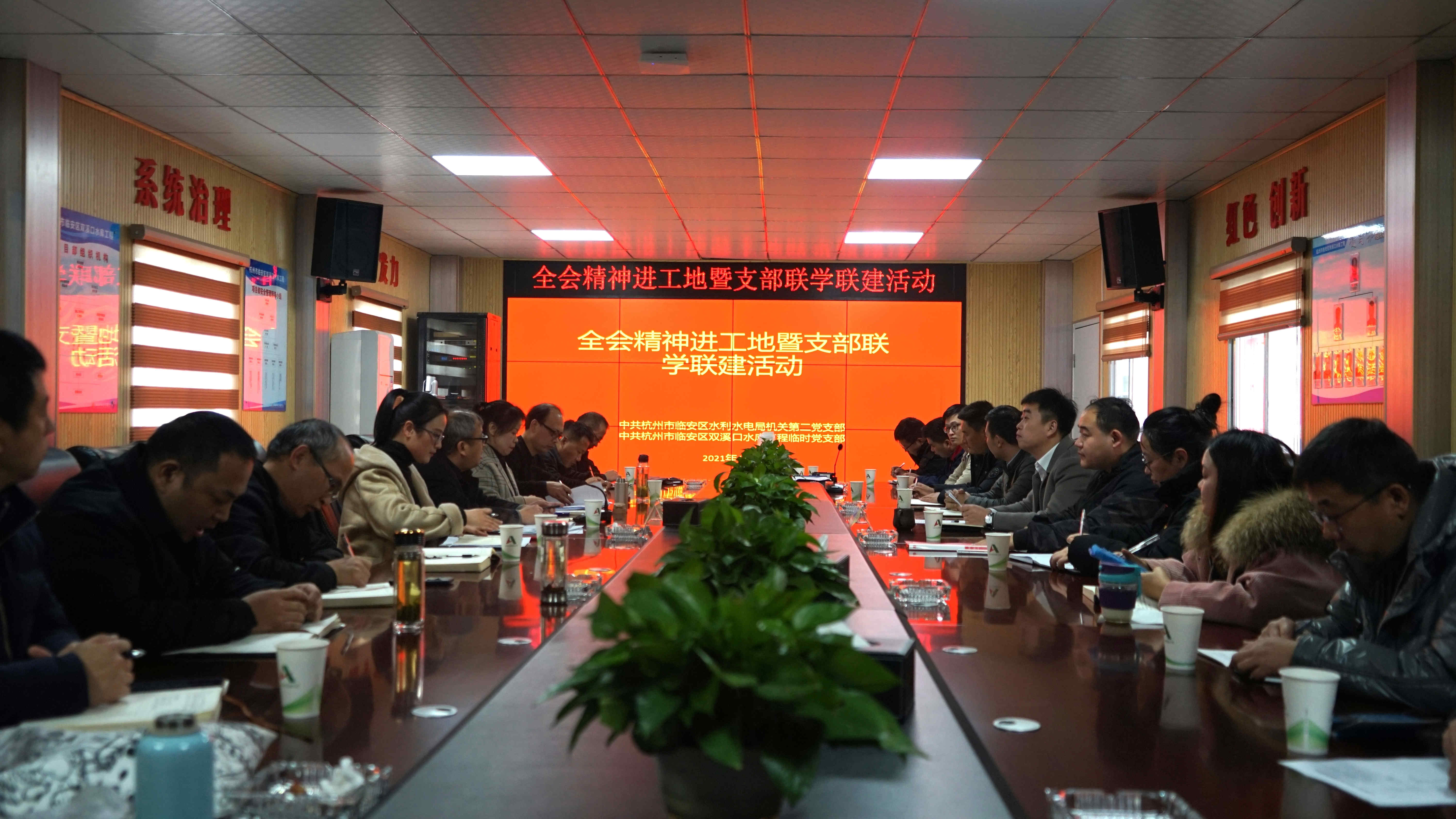 12月24日,杭州市臨安區(qū)雙溪口水庫工程臨時黨支部與杭州市臨安區(qū)水利水電局機關(guān)第二黨支部在雙溪口水庫項目部舉辦了六中全會精神進工地暨支部聯(lián)學(xué)聯(lián)建活動。