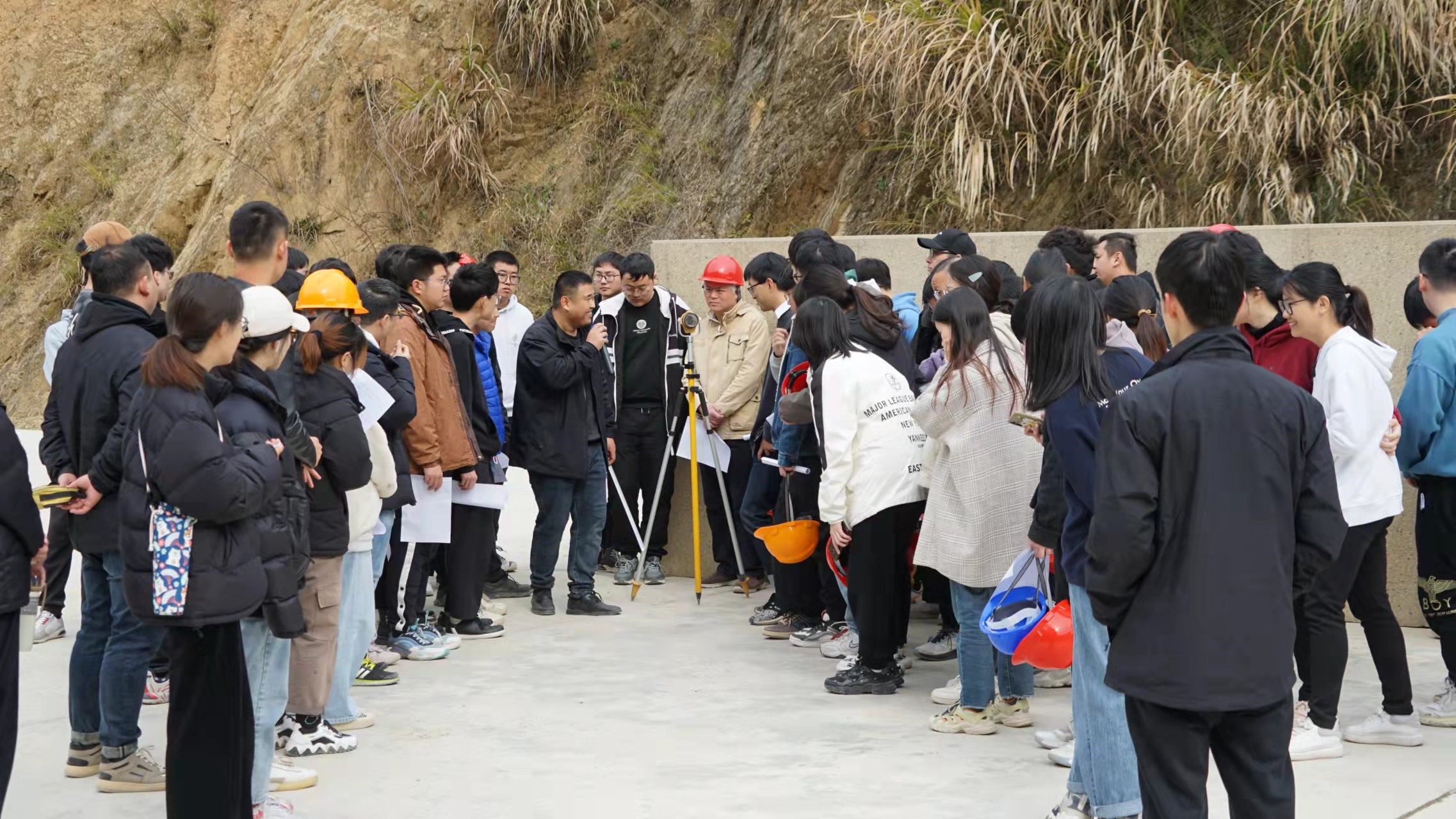 杭州魯潤(rùn)公司副總工程師張仰保組織各參建單位主要管理人員給學(xué)生們作了工程建設(shè)報(bào)告、安全知識(shí)宣講。并帶領(lǐng)同學(xué)們現(xiàn)場(chǎng)觀摩學(xué)習(xí),對(duì)大壩的澆筑方式、引水洞內(nèi)部結(jié)構(gòu)、發(fā)電廠房建造、工地測(cè)量放樣、現(xiàn)場(chǎng)試驗(yàn)室等方面進(jìn)行了專業(yè)、詳細(xì)的講解。
