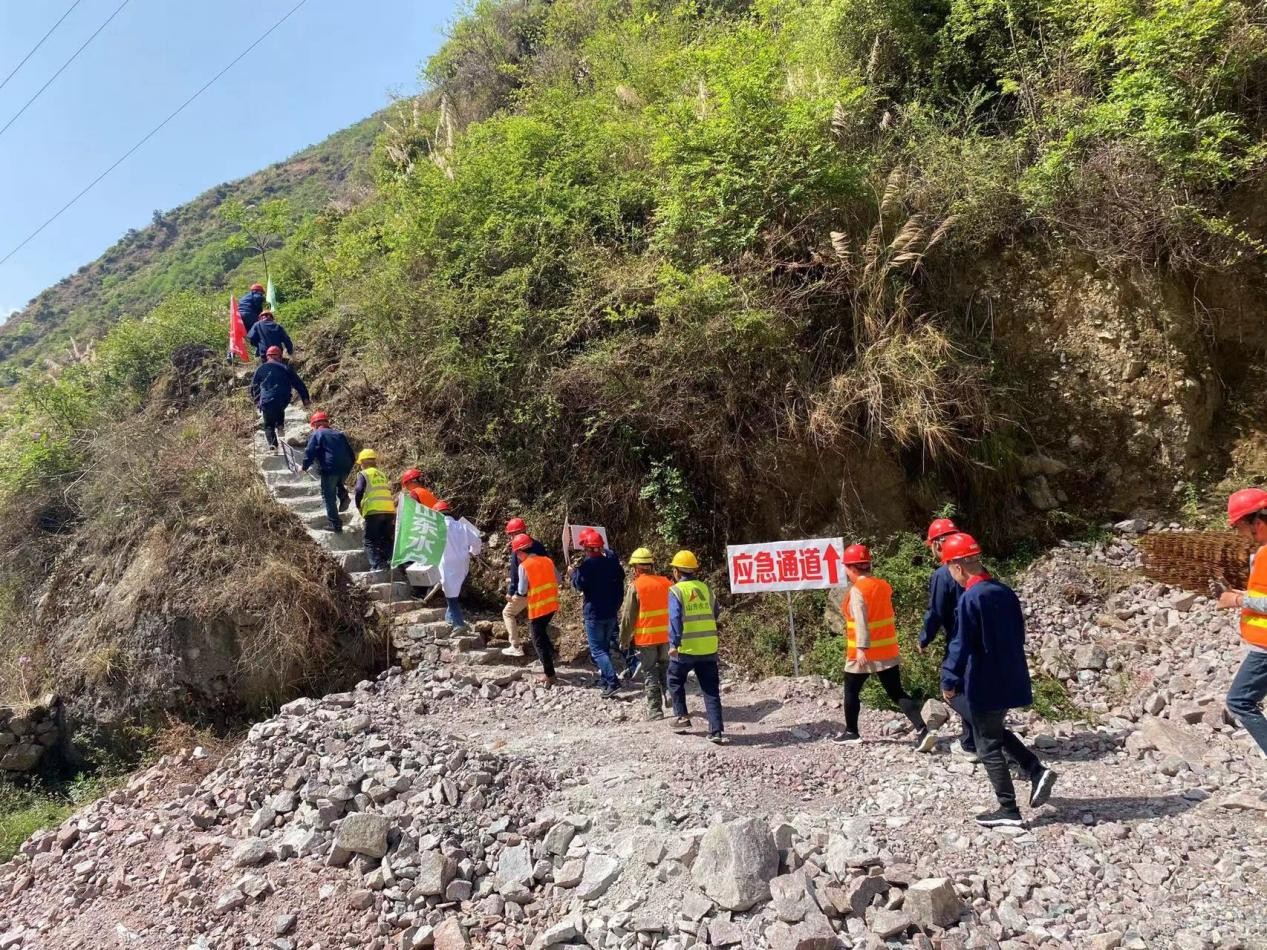 本次演練以廟基坪改線隧洞進(jìn)口工作面“突遇強(qiáng)降雨爆發(fā)山洪”為演練背景,按照應(yīng)急方案,先后通過信息報(bào)告及預(yù)警、應(yīng)急預(yù)案的啟動(dòng)、各救援小組緊急集合、現(xiàn)場(chǎng)人員的緊急疏散、施工現(xiàn)場(chǎng)的應(yīng)急搶險(xiǎn)、現(xiàn)場(chǎng)傷員救護(hù)等方面展開。