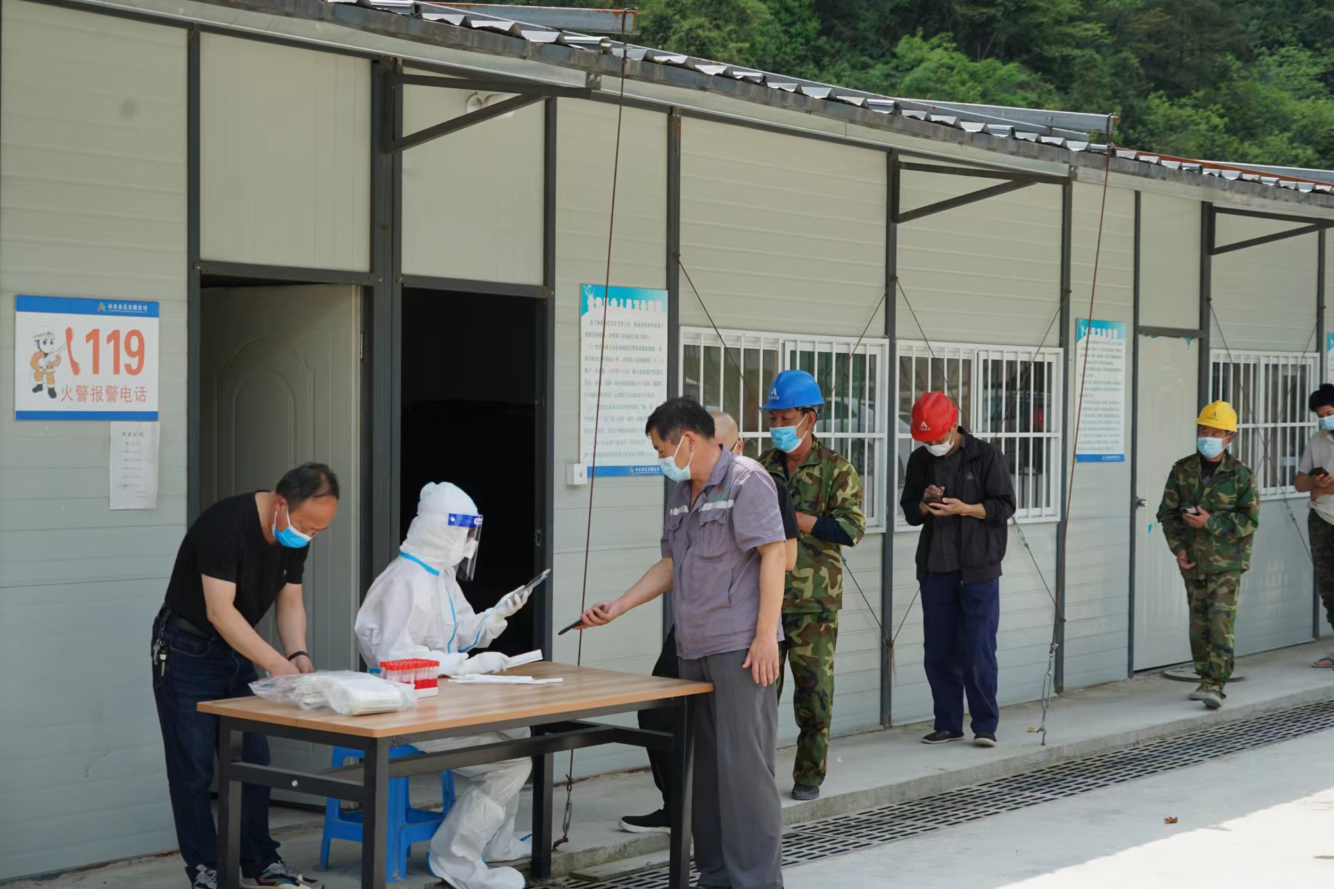 當前,全國疫情呈現(xiàn)反彈態(tài)勢,疫情防控形勢異常嚴峻。為有效管控疫情傳播風險,落實疫情防控主體責任,4月12日,杭州魯潤公司邀請項目駐地清涼峰鎮(zhèn)衛(wèi)生院醫(yī)護人員,到雙溪口水庫項目部對全體參建人員進行核酸檢測,確保應檢盡檢、全員覆蓋,筑牢建筑工地疫情防控安全網。醫(yī)護人員來工程現(xiàn)場核酸檢測,不僅免去了項目人員到醫(yī)院排隊的不便,更大程度的節(jié)約了時間,避免影響正常施工。