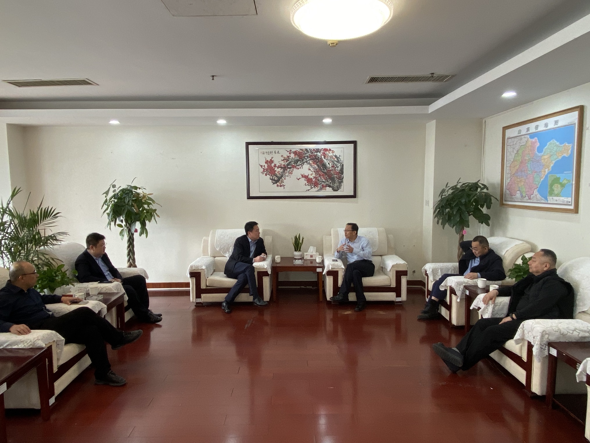 隨后,靳文碩等一行到青島區(qū)域協(xié)同發(fā)展辦公室同李丕明主任進行座談交流。李丕明對靳文碩一行表示熱烈歡迎,并對水總在青島區(qū)域的投資建設(shè)給予大力支持,希望雙方在此基礎(chǔ)之上再進行深入探討,力爭實現(xiàn)更深層次的合作發(fā)展。