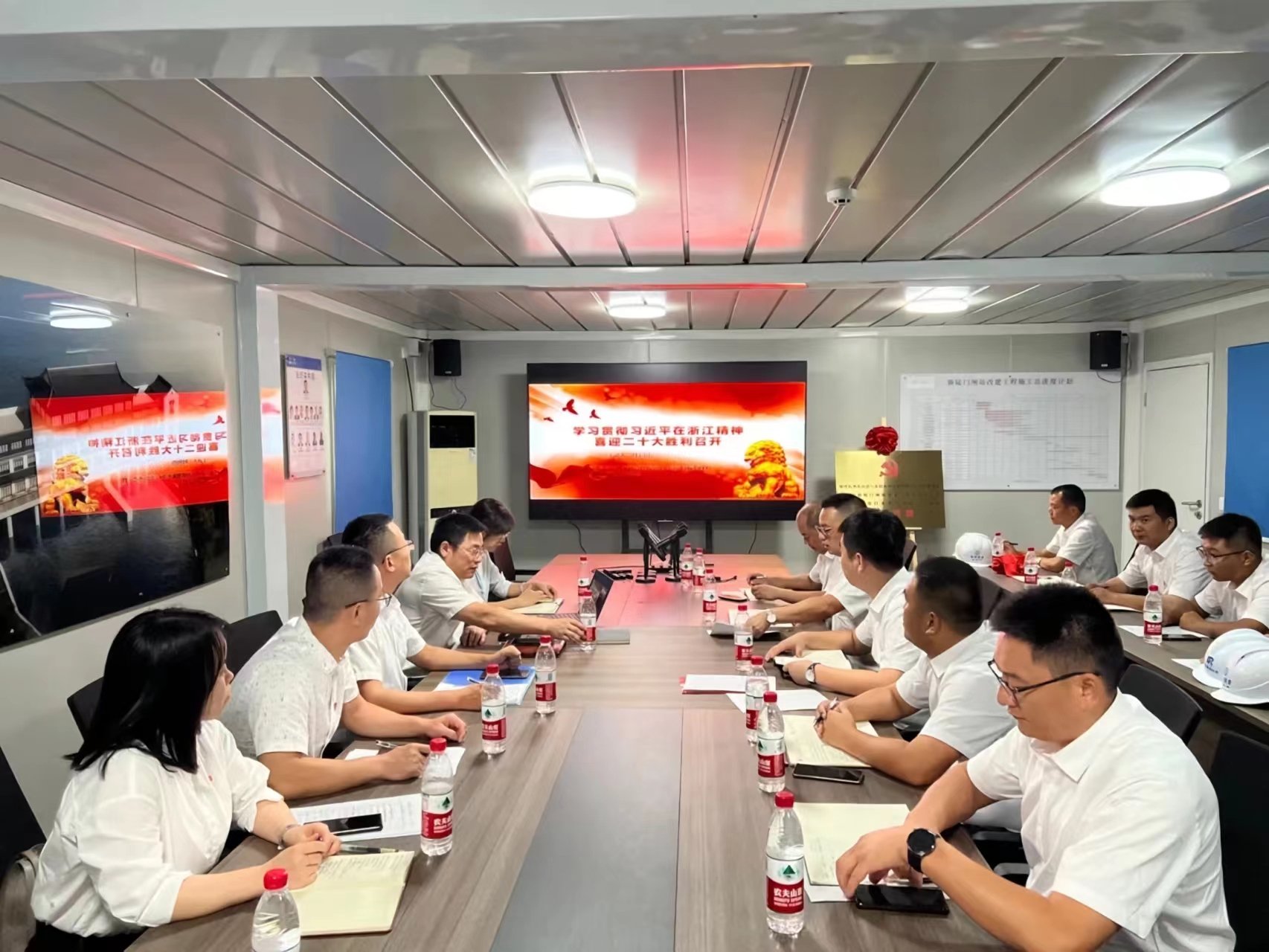 余杭、臨安兩區(qū)自然資源豐富、水利文化深厚。新陡門(mén)閘站改建工程和雙溪口水庫(kù)工程兩個(gè)項(xiàng)目均為重點(diǎn)水利項(xiàng)目,黨建聯(lián)建在浙江省開(kāi)創(chuàng)了水利主管部門(mén)和項(xiàng)目臨時(shí)支部黨建共建的先河,也是水利項(xiàng)目臨時(shí)黨支部之間共建的首次嘗試,是落實(shí)黨建進(jìn)工地、“黨旗在基層一線高高飄揚(yáng)”的進(jìn)一步探索,必將為后續(xù)其他項(xiàng)目的建設(shè)提供示范效應(yīng)。下一步,共建各方將加強(qiáng)溝通交流,形成互幫互助、比學(xué)趕超的良好氛圍,爭(zhēng)取兩個(gè)項(xiàng)目早日建成運(yùn)行,為兩區(qū)人民共同富裕貢獻(xiàn)水利人的一份力量,以優(yōu)異的成績(jī)迎接黨的二十大勝利召開(kāi)。