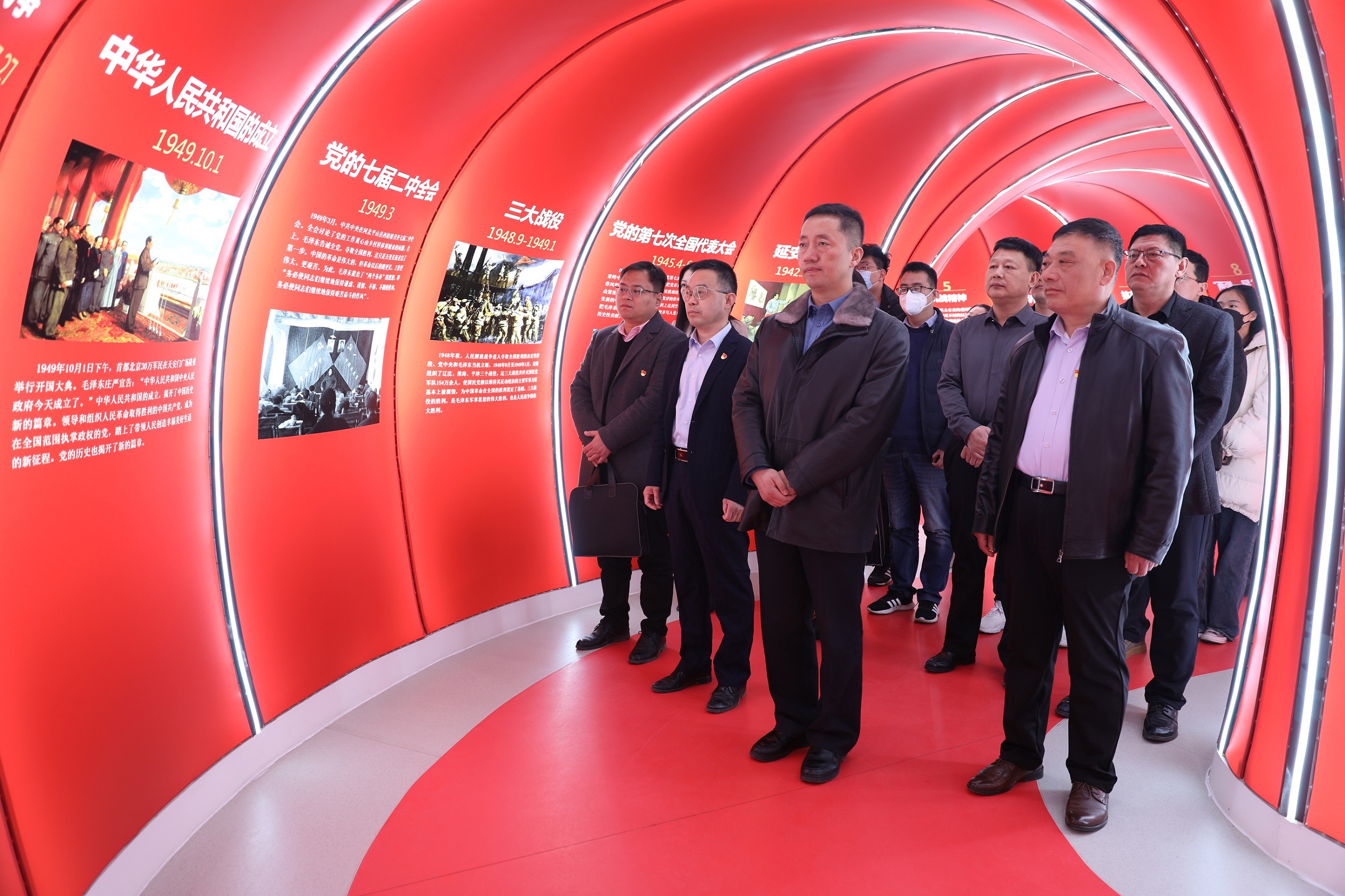 簽約儀式結(jié)束后,雙方開展第一次共建活動(dòng),黨員們一起穿越“初心隧道”,詳細(xì)了解中國(guó)共產(chǎn)黨成立的歷史背景,在回顧建黨歷史中感受老一輩共產(chǎn)黨人為追求真理不懈奮斗的激情歲月。在紅色經(jīng)典誦讀環(huán)節(jié),黨員干部齊聲誦讀紅色經(jīng)典,從紅色經(jīng)典書籍中汲取知識(shí)、培根鑄魂。