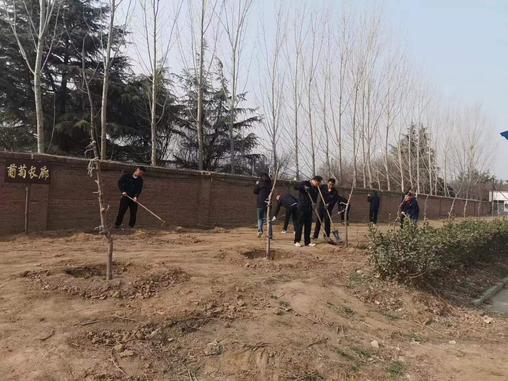 植樹現(xiàn)場,大家互相配合,掘坑、扶樹、培土,澆水,忙得不亦樂乎。新栽種的200多棵黃金維納斯和精品紅富士蘋果樹苗、30多棵葡萄樹苗、10多棵桃樹、月季花卉等為水總曲阜基地再添一片新綠。今年開春以來,建筑勞務公司以劃分責任區(qū)為單位對曲阜駐地綠地上死亡、損缺、老化的植物進行全面檢查,進一步將春季綠化任務細化,責任到人。同時積極行動,通過挖掘機移栽、人工挖運等方式協(xié)調(diào)大量綠化植被,組織員工們在駐地內(nèi)栽種。