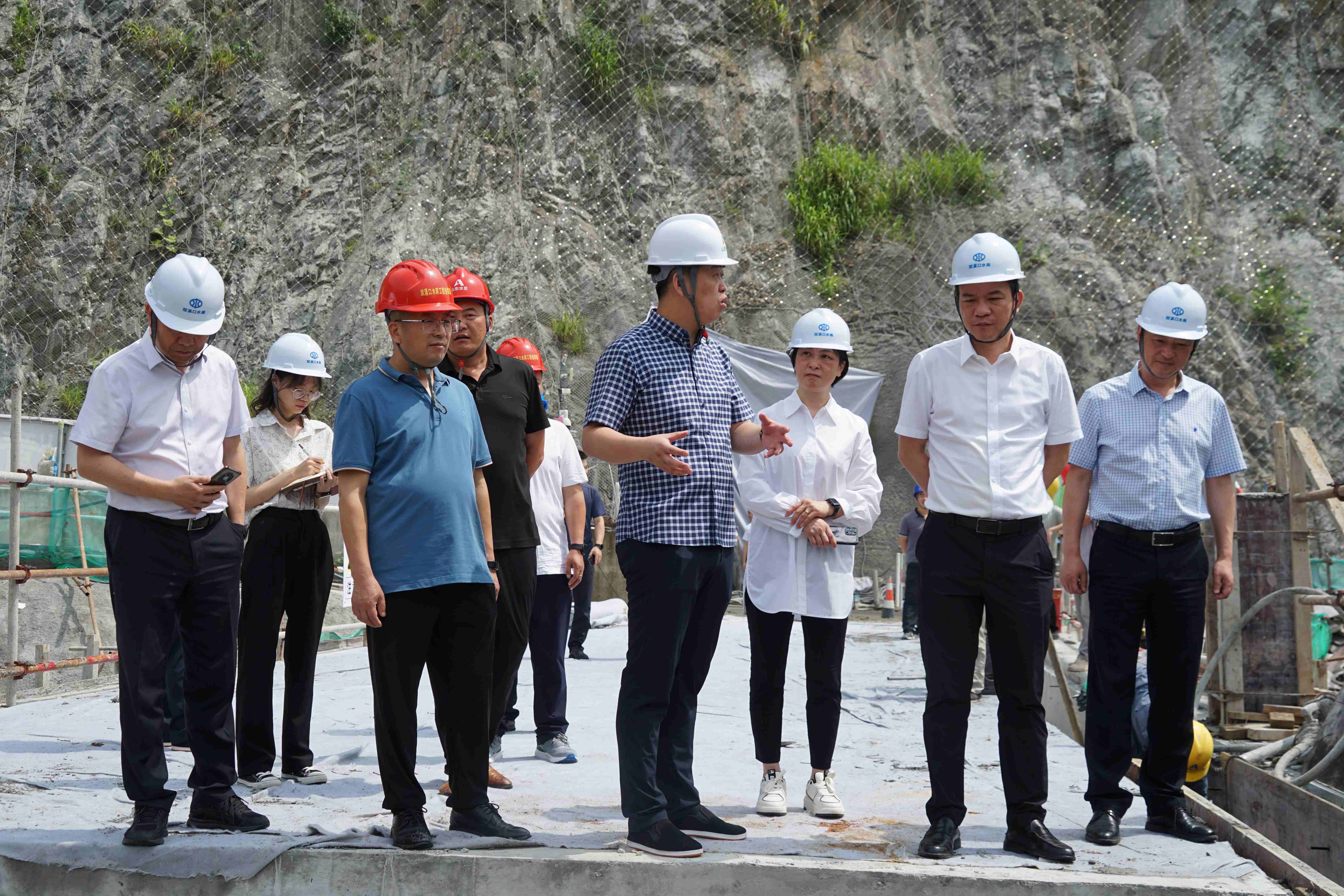 楊國正一行到雙溪口水庫工程察看了施工現(xiàn)場,詳細了解工程建設(shè)情況,聽取工程進展、工作安排等情況介紹,對雙溪口水庫工程取得的成績給予充分肯定。楊國正強調(diào),要在保證質(zhì)量、安全的基礎(chǔ)上,進一步強化施工組織管理,做到施工程序規(guī)范、嚴謹,確保工程如期投入使用,發(fā)揮效益。