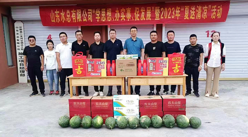 為持續(xù)推動學習貫徹習近平新時代中國特色社會主義思想主題教育走深走實,切實維護廣大職工的勞動健康權(quán)益,常態(tài)化開展“我為群眾辦實事”實踐活動,7月6日,公司總會計師楊利軍到二局有限公司巨野縣二支河引調(diào)水工程開展“學思想、辦實事、促發(fā)展”暨2023年“夏送清涼”活動。二局有限公司黨委書記、總經(jīng)理王傳波,副總經(jīng)理劉波、李灝,總會計師王佃志等陪同參加。