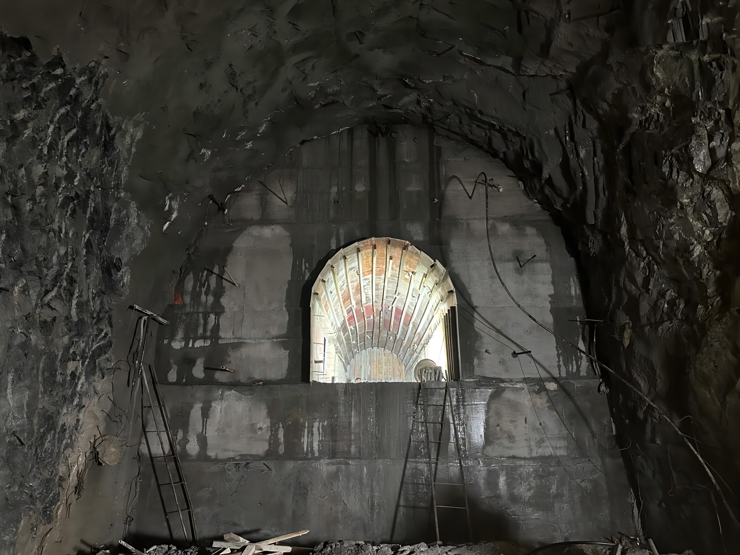導(dǎo)流隧洞布置在大壩右岸山體內(nèi),全長207.17米,進口高程268.00米,出口高程263.20米,斷面為7米×7米城門洞型,永久封堵體長度為25米。3月14日水庫下閘蓄水后,項目部按照既定施工方案,采取“晝土建夜灌漿”科學(xué)的交叉作業(yè)模式,投入人員、材料、機械迅速就位,先后克服空間受限、工期緊張、施工危險系數(shù)高、混凝土水化熱等諸多挑戰(zhàn),在有限的時間和施工空間里,歷時一個月完成了導(dǎo)流隧洞永久封堵體混凝土的施工。目前水庫水位已蓄至310.8m高程,導(dǎo)流隧洞封堵的完成,為豐水季節(jié)發(fā)電收益提供了堅實保障,切實貫徹了早投產(chǎn)、早收益的建設(shè)口號。