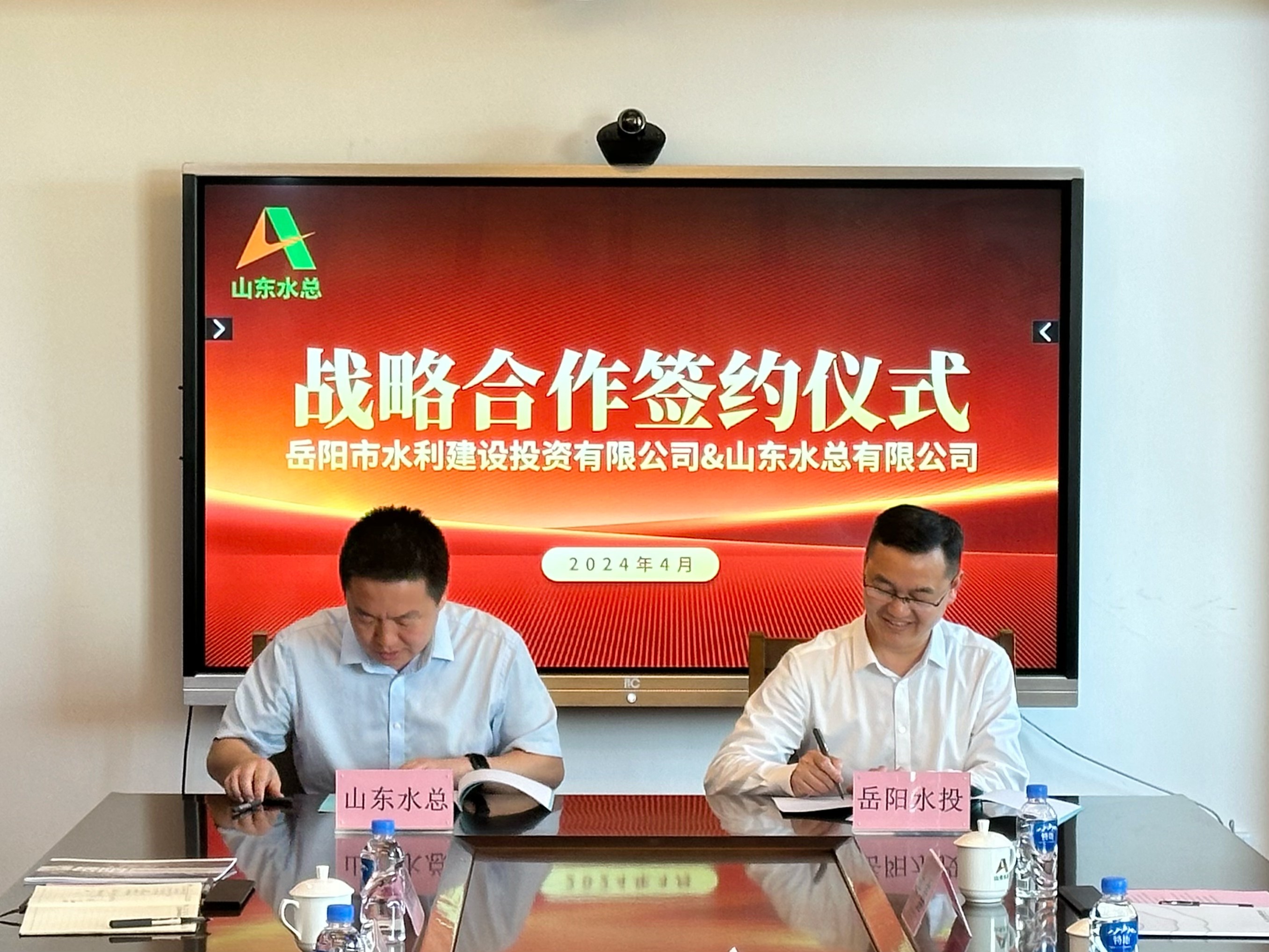 4月25日下午,岳陽市水利建設(shè)投資有限公司和山東水總有限公司戰(zhàn)略合作簽約儀式在公司總部舉行。岳陽水投公司總經(jīng)理劉紹鋒、副總經(jīng)理張威,山東水總公司黨委副書記、董事、總經(jīng)理靳文碩,黨委委員、副總經(jīng)理李光市等出席簽約儀式。