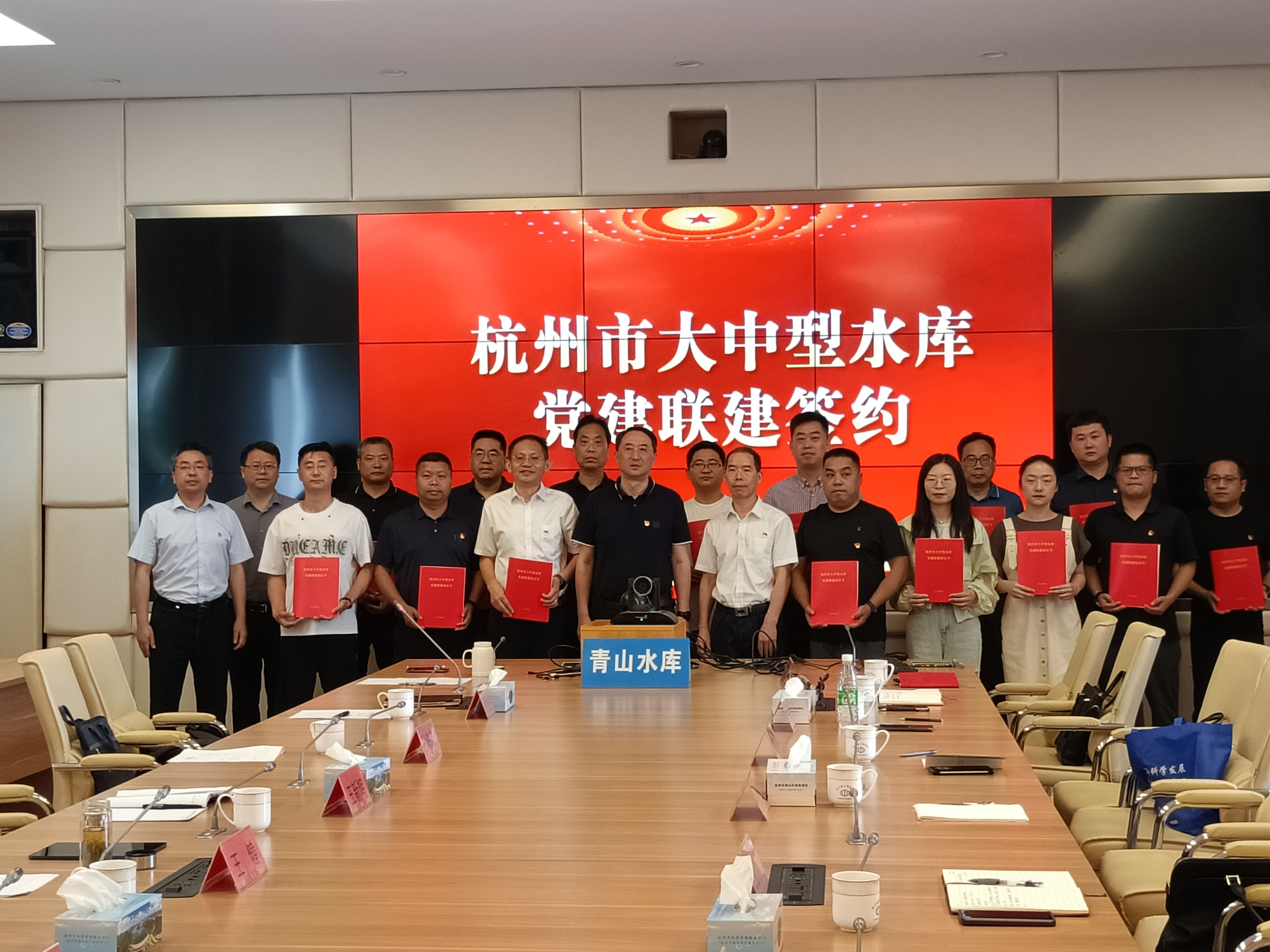 為推動(dòng)黨建工作與業(yè)務(wù)工作深度融合,助推新階段水利高質(zhì)量發(fā)展。近日,杭州市17座大中型水庫(kù)的15個(gè)黨支部在青山水庫(kù)開(kāi)展黨建聯(lián)建活動(dòng),簽訂黨建聯(lián)建協(xié)議。杭州魯潤(rùn)公司黨支部作為雙溪口水庫(kù)水管單位參與本次簽約儀式。