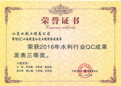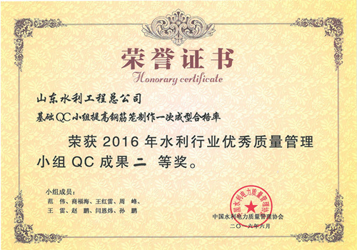 公司“提高排洪道鉆孔灌注樁一次成樁合格率”等四項成果榮獲2016年水利行業(yè)優(yōu)秀質(zhì)量管理小組QC成果獎