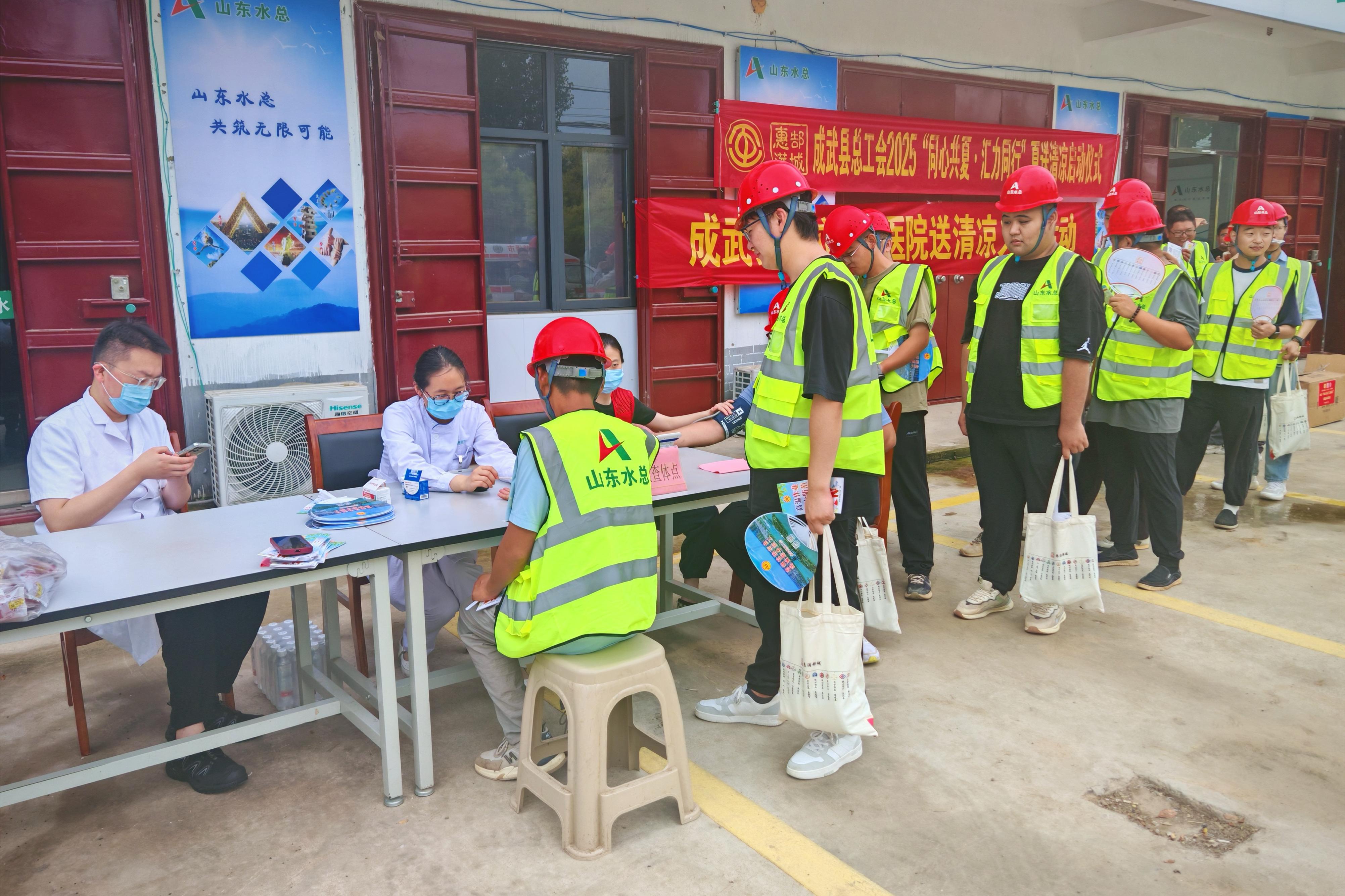 7月23日,菏澤市成武縣總工會、成武縣公立中醫(yī)醫(yī)院一行赴基礎(chǔ)有限公司成武縣引調(diào)水工程項(xiàng)目部,開展“同心共夏 匯力同行”夏送清涼活動,慰問高溫下奮戰(zhàn)的一線工作人員。