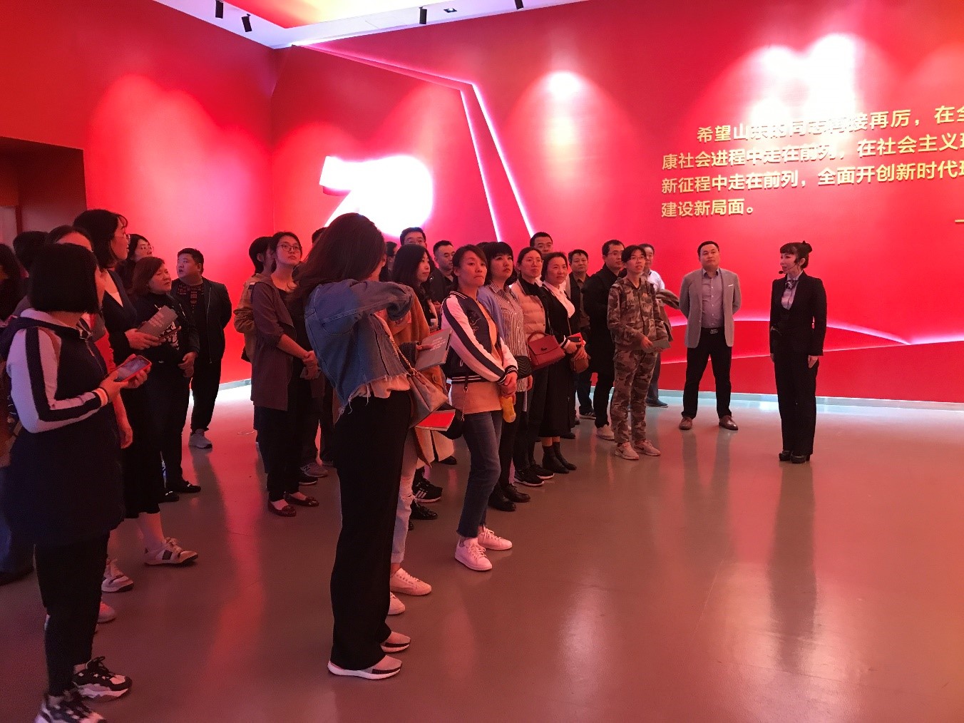 通過此次觀展,同志們現(xiàn)場感受到新中國成立以來特別是改革開放以來黨和國家事業(yè)發(fā)展的偉大成就,極大激發(fā)了愛國之情和強國之志。大家表示,山東70年的發(fā)展變化也是新中國成立70周年歷史變遷的縮影,充分彰顯了中國共產(chǎn)黨領導的政治優(yōu)勢和中國特色社會主義制度的巨大優(yōu)越性。山東70年取得的成就,祖國70年的光輝歷程不但激發(fā)了自己的自豪感,榮耀感,更激勵自己牢記初心使命,立足本職崗位,奮力開拓進取!