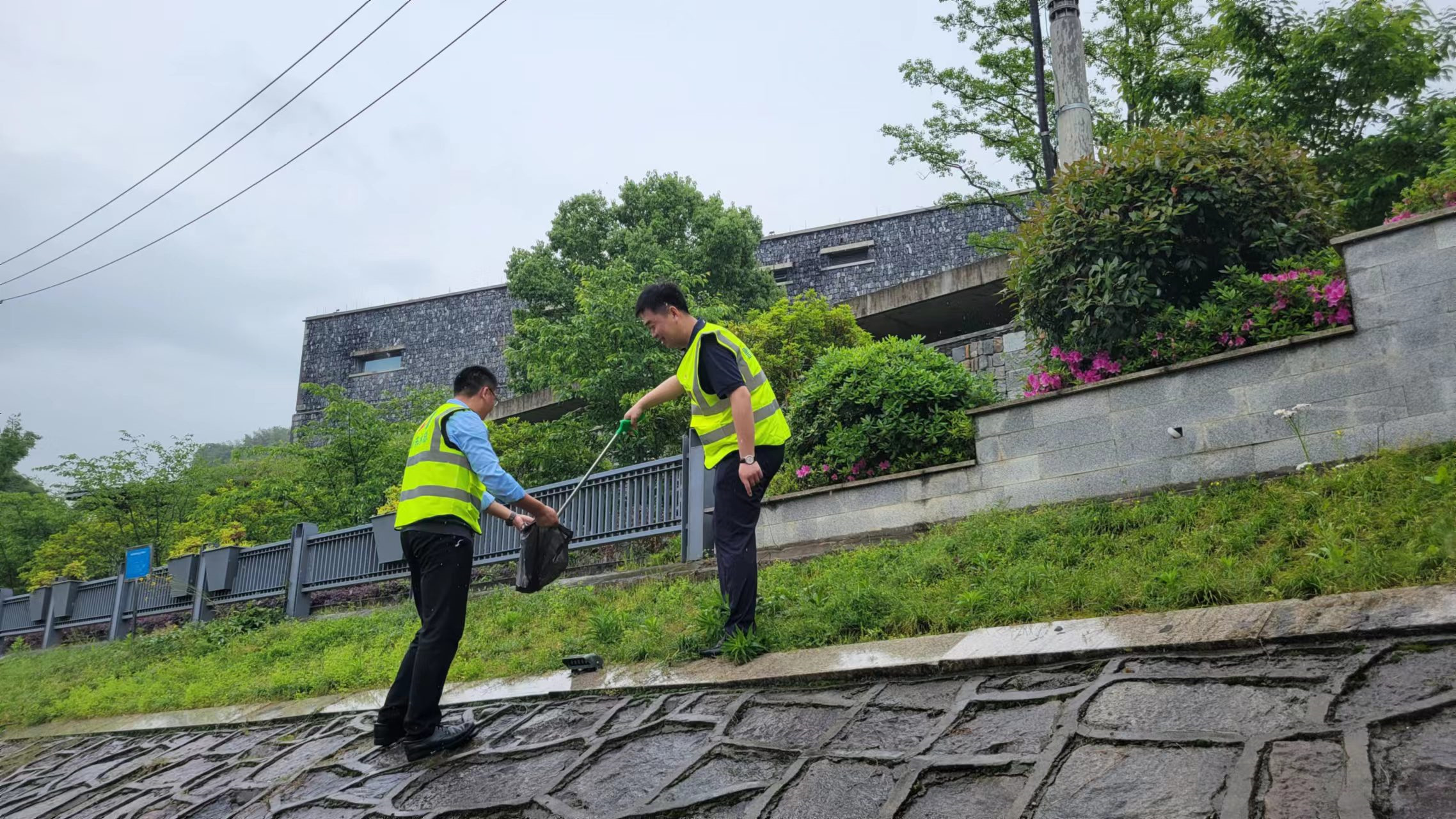 錦溪兩岸,身著志愿服的突擊隊員們紛紛手持垃圾袋、火鉗等工具,對護河綠道和綠化帶中的垃圾、煙頭及雜物進行清理。經(jīng)過大家一上午的忙碌,錦溪兩岸煥然一新。
