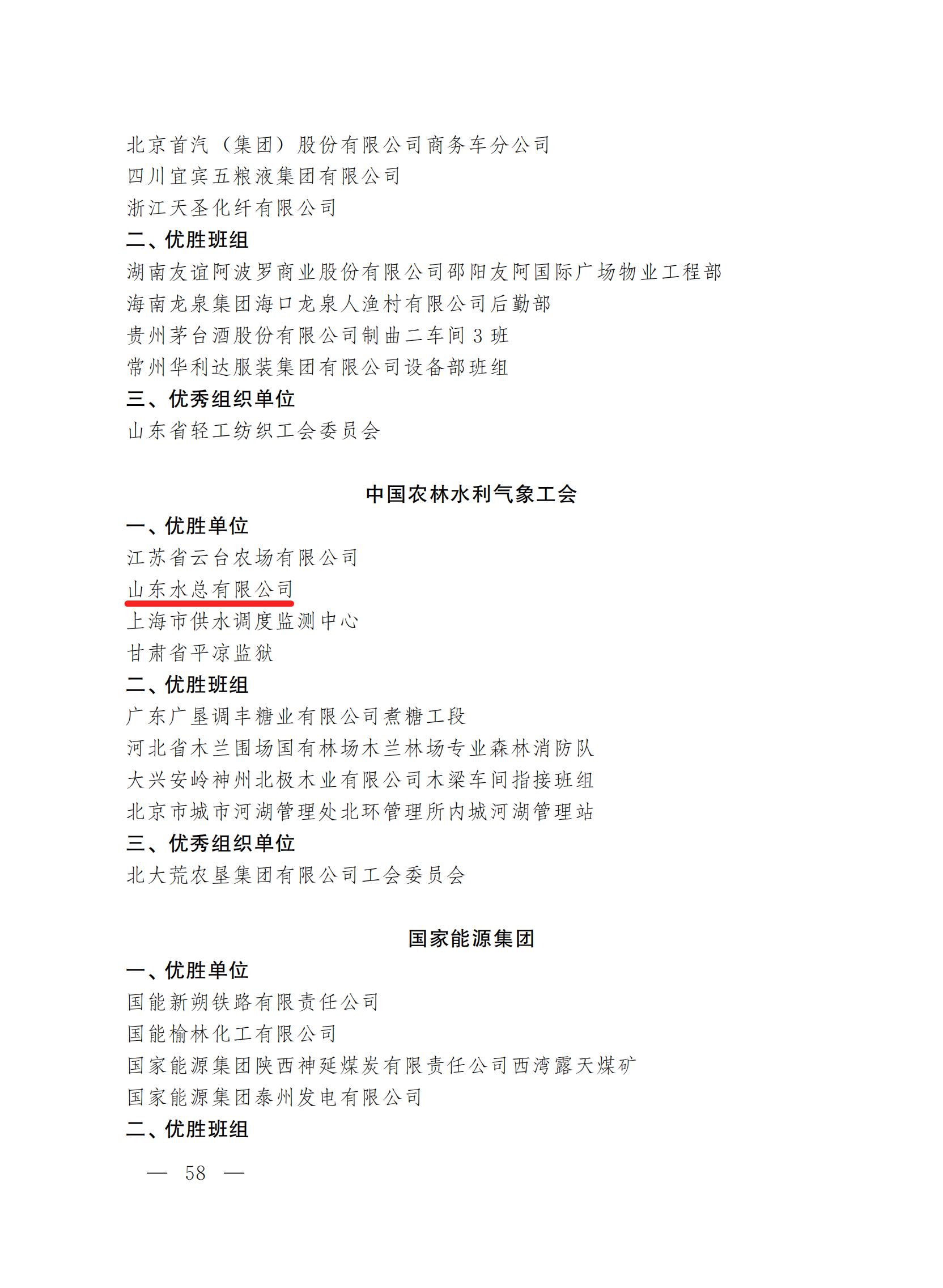 近日,中華全國總工會、應急管理部和國家衛(wèi)生健康委員會聯(lián)合發(fā)文,對2020—2021年度全國“安康杯”競賽活動先進集體和優(yōu)秀個人進行表彰,山東水總有限公司榮獲全國“安康杯”競賽活動優(yōu)勝單位稱號。