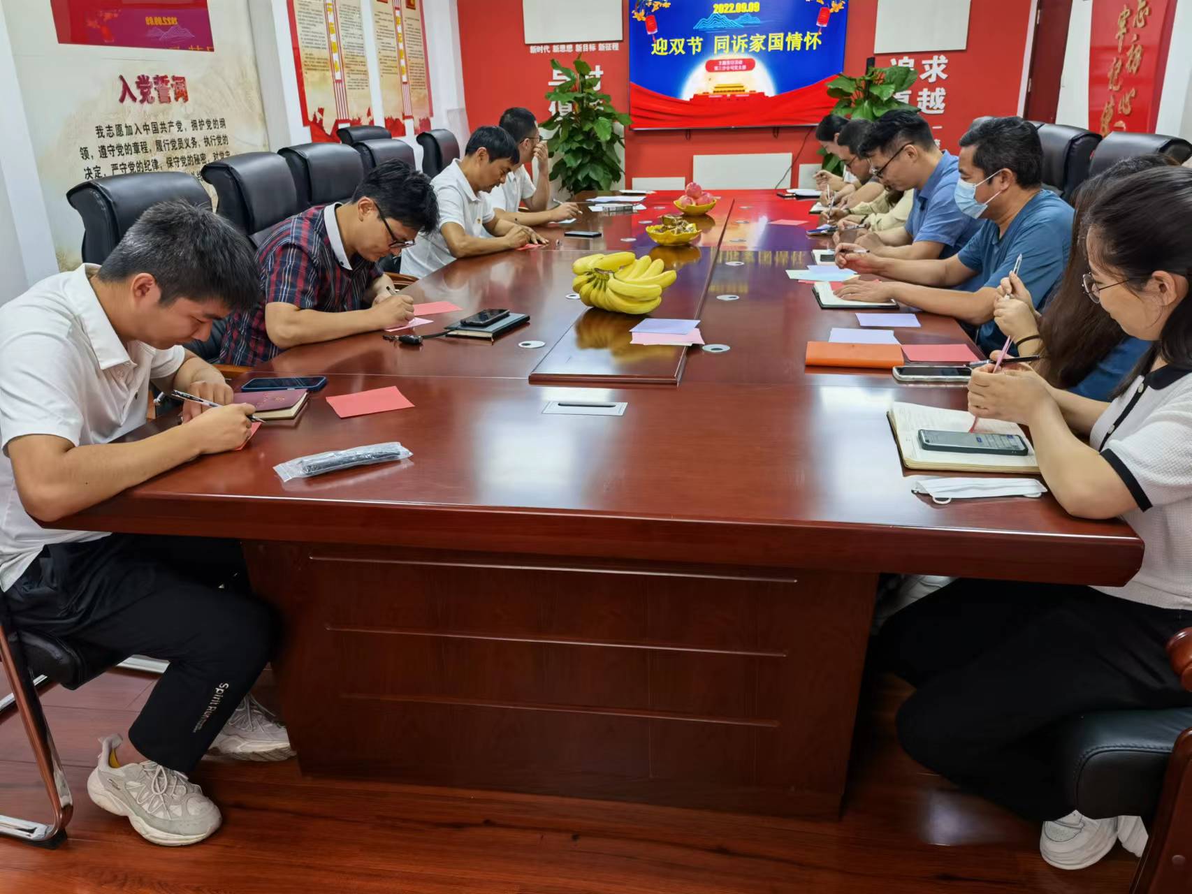 2022年9月9日是毛澤東逝世46周年,活動(dòng)先是同讀《月寄人間無(wú)限情——讀毛澤東詩(shī)詞中的詠月章句》,共同紀(jì)念偉大領(lǐng)袖。隨后一起觀看黨員、群眾制作的廉潔小視頻,倡導(dǎo)干部職工廉潔過(guò)雙節(jié)。最后大家同寫寄語(yǔ)、同吃月餅,相互祝福,祝福家庭美滿幸福、祝福公司更好更快的發(fā)展、祝福祖國(guó)更加繁榮富強(qiáng),并表示要將個(gè)人的努力和家國(guó)情懷融入到不懈奮斗中去!