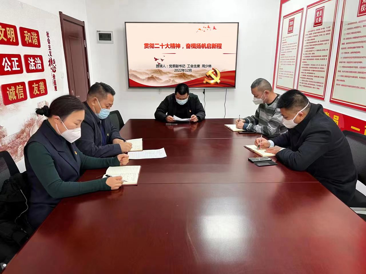 12月29日下午, 公司黨委副書(shū)記、工會(huì)主席周少林以“貫徹二十大精神,奮楫揚(yáng)帆啟新程”為題,為建筑勞務(wù)公司黨員們講授專題黨課。黨課全面深入闡述了“黨的二十大召開(kāi)主題、重大意義、結(jié)合工作實(shí)際如何落實(shí)二十大精神”等三個(gè)方面的內(nèi)容。