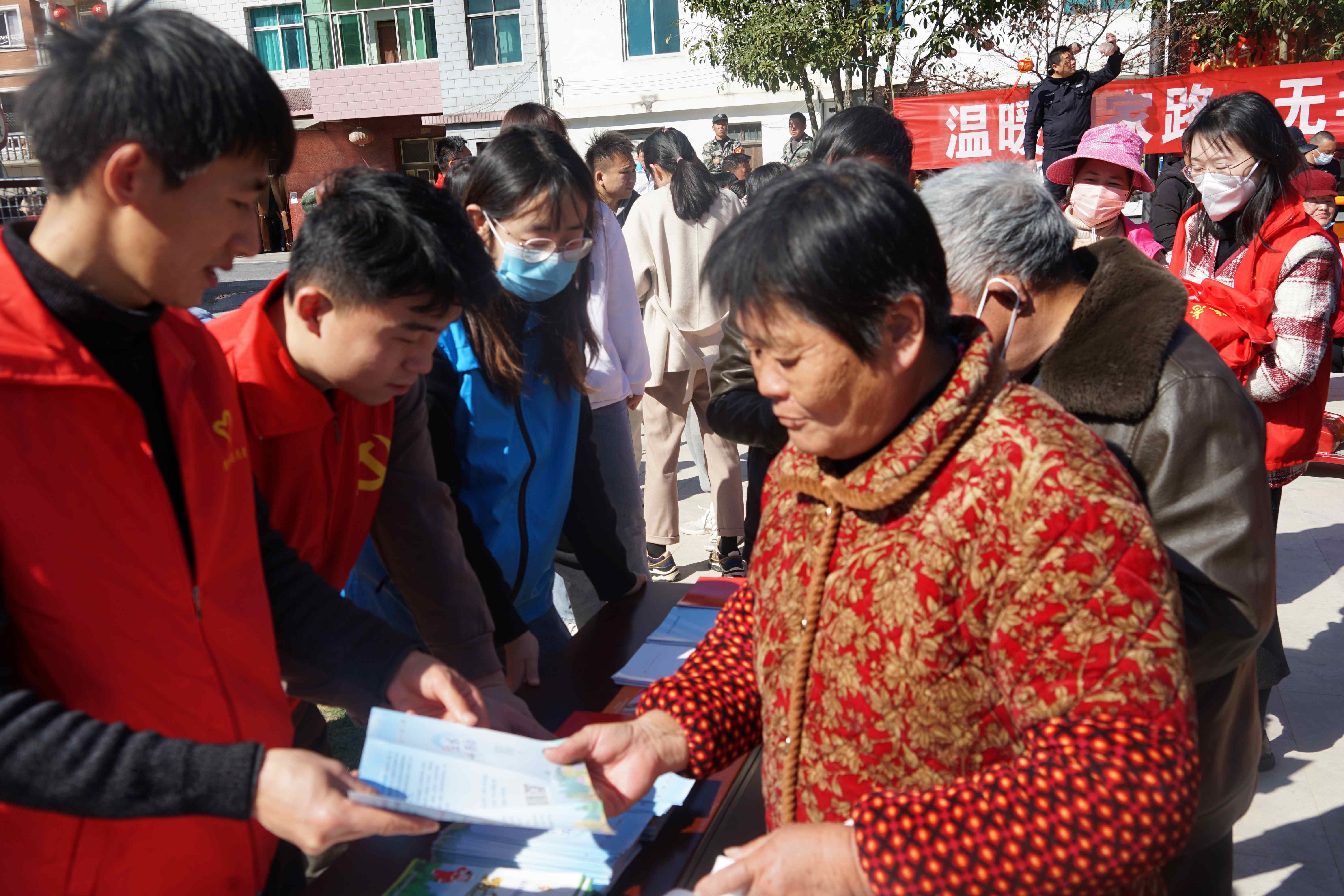 活動現(xiàn)場,舞臺上戲曲、音樂表演與猜燈謎活動精彩紛呈。舞臺下,清涼峰鎮(zhèn)政府工作人員、臨時黨支部黨員和林竹村黨群服務(wù)中心成員組成志愿者服務(wù)隊,為大家普及禁毒知識和發(fā)放森林防火手冊,廣場上洋溢著一片歡聲笑語?;顒咏Y(jié)束后,志愿者們?yōu)榱种翊灏贇q老人送去熱氣騰騰的煮湯圓。