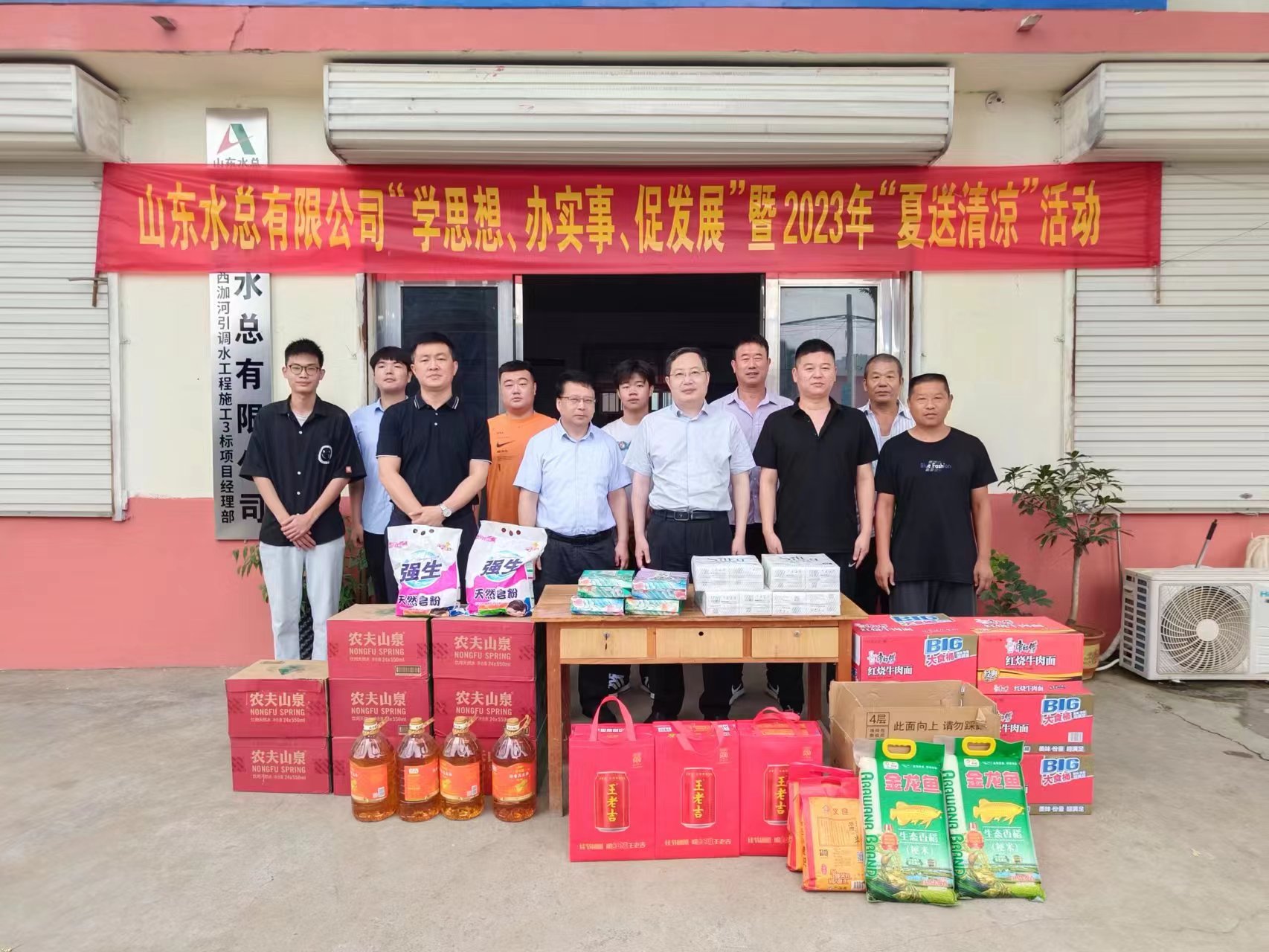 7月27日,公司黨委委員、副總經(jīng)理杜貞義等一行人到第六分公司棗莊市市中區(qū)西泇河引調(diào)水工程項目開展“學(xué)思想、辦實事、促發(fā)展”暨2023年“夏送清涼”慰問活動。