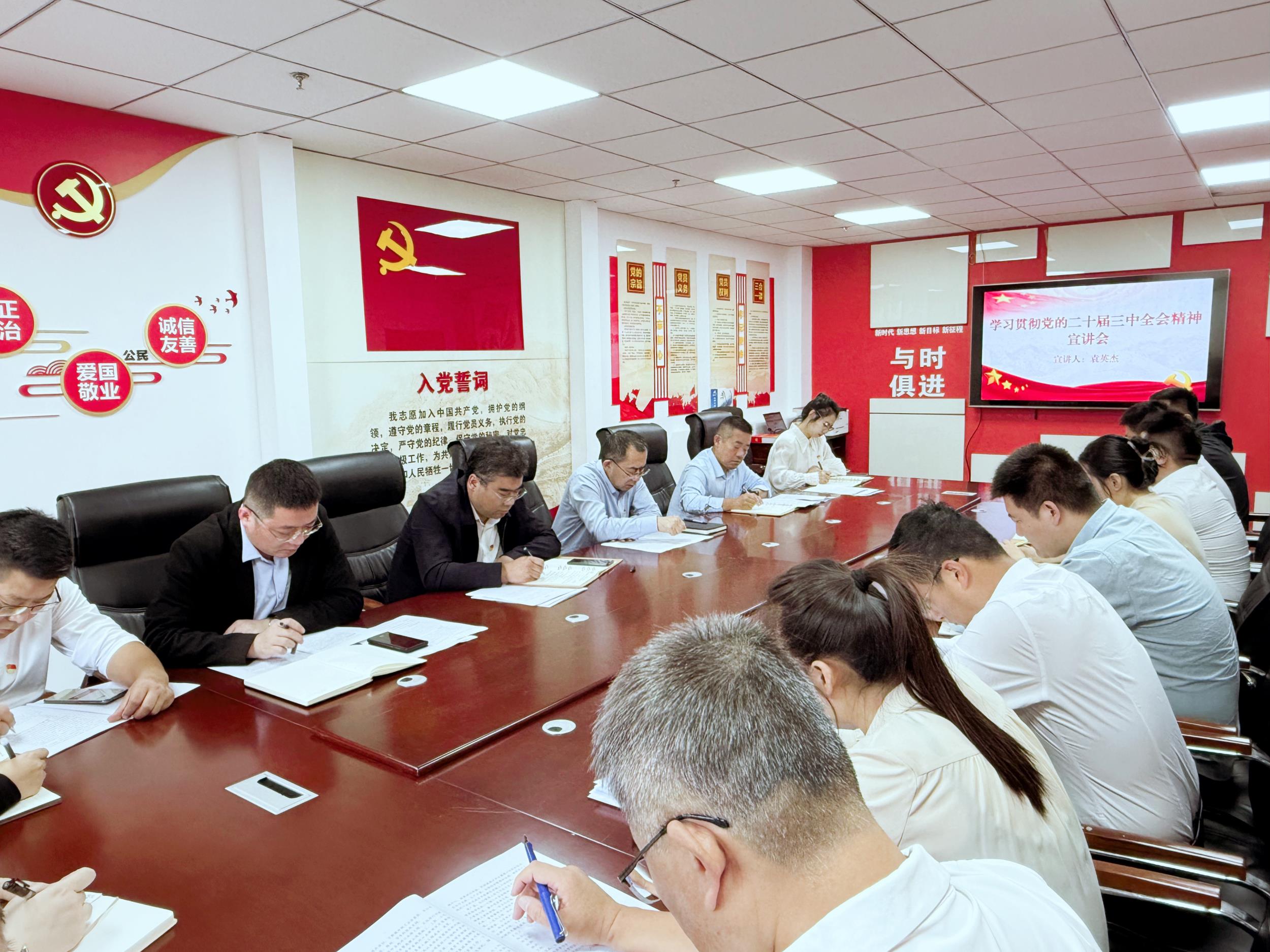 袁英杰以專題黨課的形式帶領全體黨員干部重點學習了《中共中央關于進一步全面深化改革推進中國式現(xiàn)代化的決定》的重大意義和總體要求。同時結合工作實際,從高站位抓學習,高標準抓融合、高質量抓隊伍三個方面講解了如何貫徹落實全會精神,要求大家要堅持融會貫通,把學習宣傳貫徹全會精神同開展黨紀學習教育緊密結合起來,始終保持“創(chuàng)”的精神、“闖”的勁頭、“干”的作風,全力沖刺各項目標任務,以實干業(yè)績檢驗學習貫徹成效。