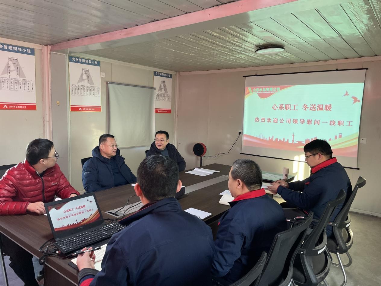 王坤林向一線職工表達(dá)了深切問候并發(fā)放慰問品,對大家不畏嚴(yán)寒、堅(jiān)守崗位的精神給予了高度評價(jià)。隨后查看了職工生活環(huán)境及項(xiàng)目施工現(xiàn)場,聽取了項(xiàng)目建設(shè)情況匯報(bào)。會上,王坤林鼓勵(lì)員工繼續(xù)發(fā)揚(yáng)團(tuán)結(jié)奮斗、勇于擔(dān)當(dāng)?shù)墓ぷ骶?,為?xiàng)目平穩(wěn)推進(jìn)貢獻(xiàn)自己的力量。